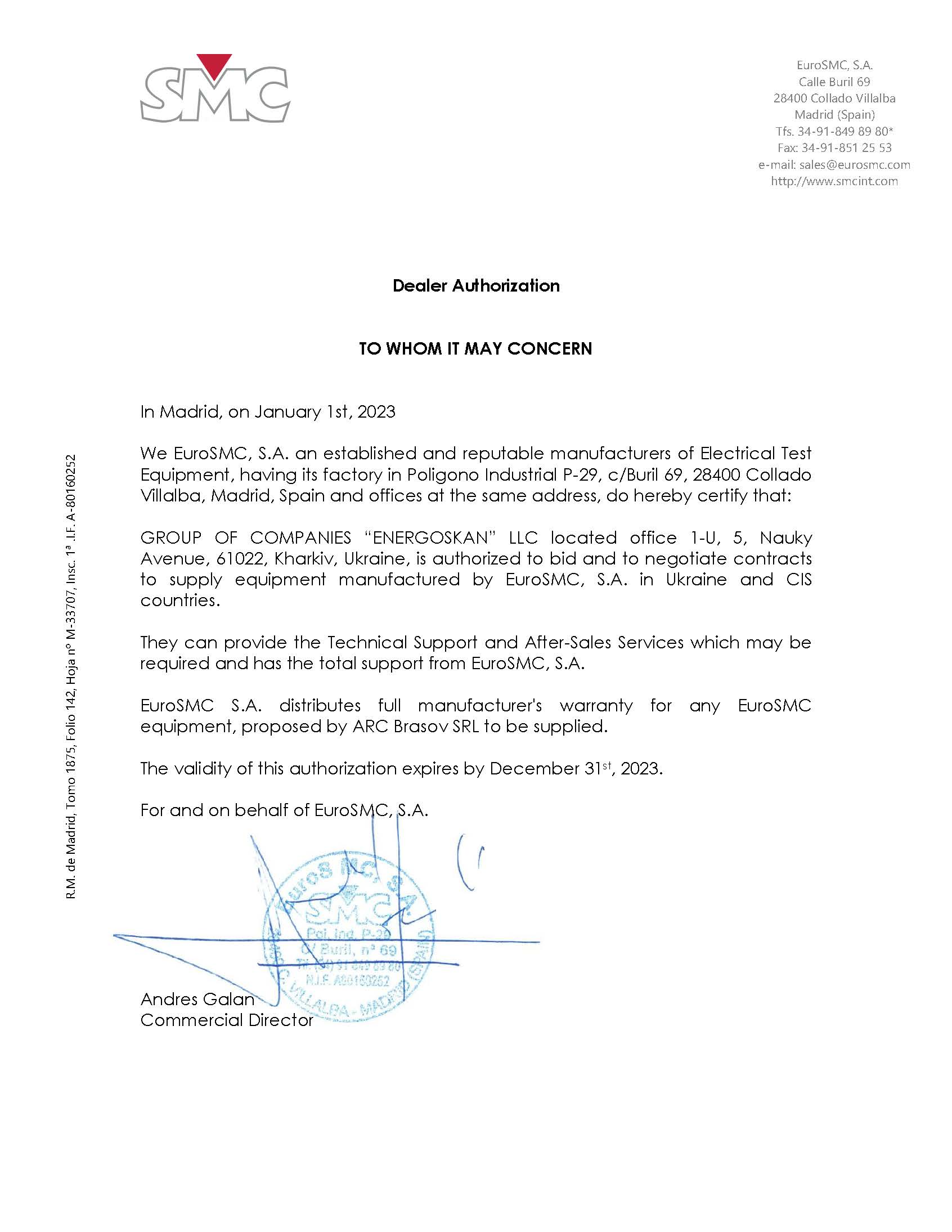 Сертифікат ділера EuroSMC