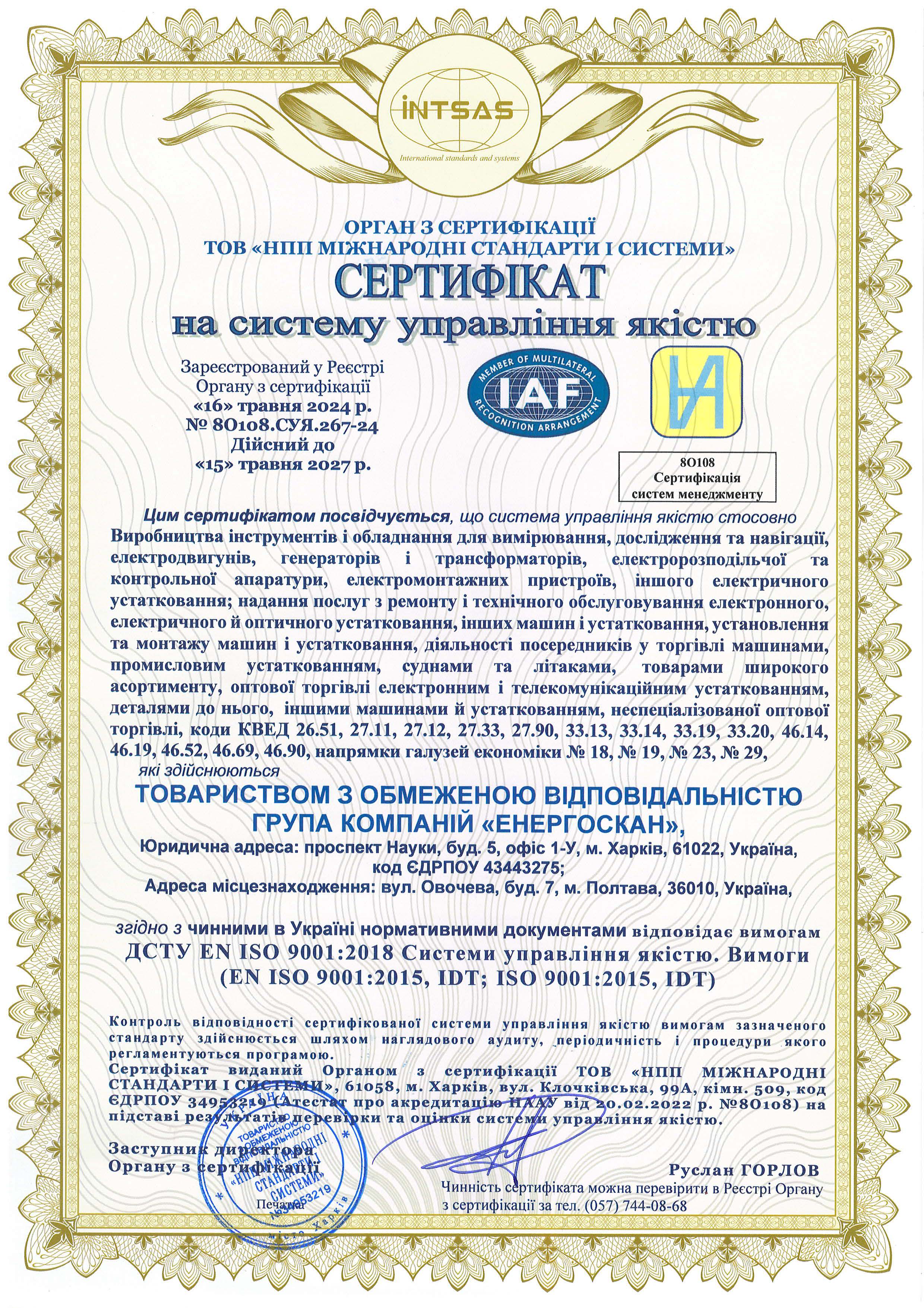 Сертифікат якості ISO 9001